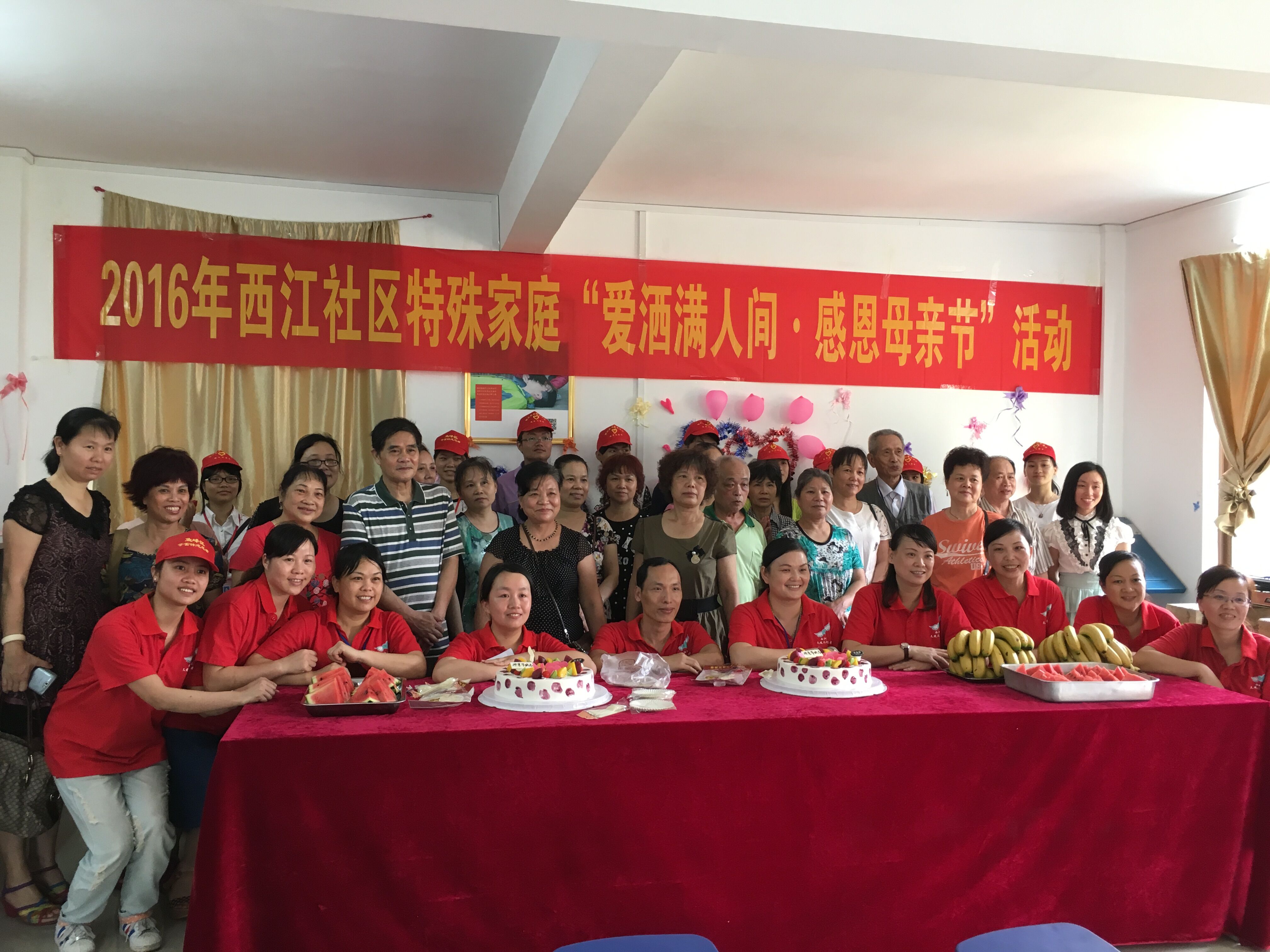 不一样的母亲,不一样的儿女,却是一样的亲情。当日早上,志愿者们早早到达西江社区指定地点布置会场,给社区里的“妈妈”一个惊喜,为儿女不在家的“妈妈”过一个特殊的“母亲节”。 -