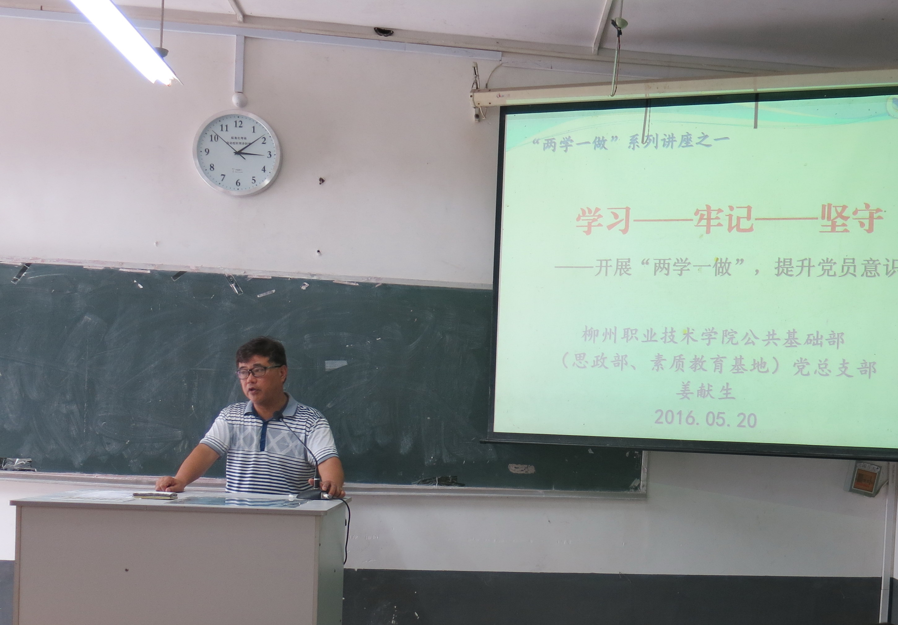 新闻网消息(通讯员/公共基础部 黄志卫 摄影/公共基础部 覃扬强)5月20日下午,公共基础部党总支部在文华楼105教室召开“两学一做”学习教育专题研讨会,党总支书记姜献生主讲,党总支组织委员黄志卫主持会议,公共基础部党总支全体党员参加会议。