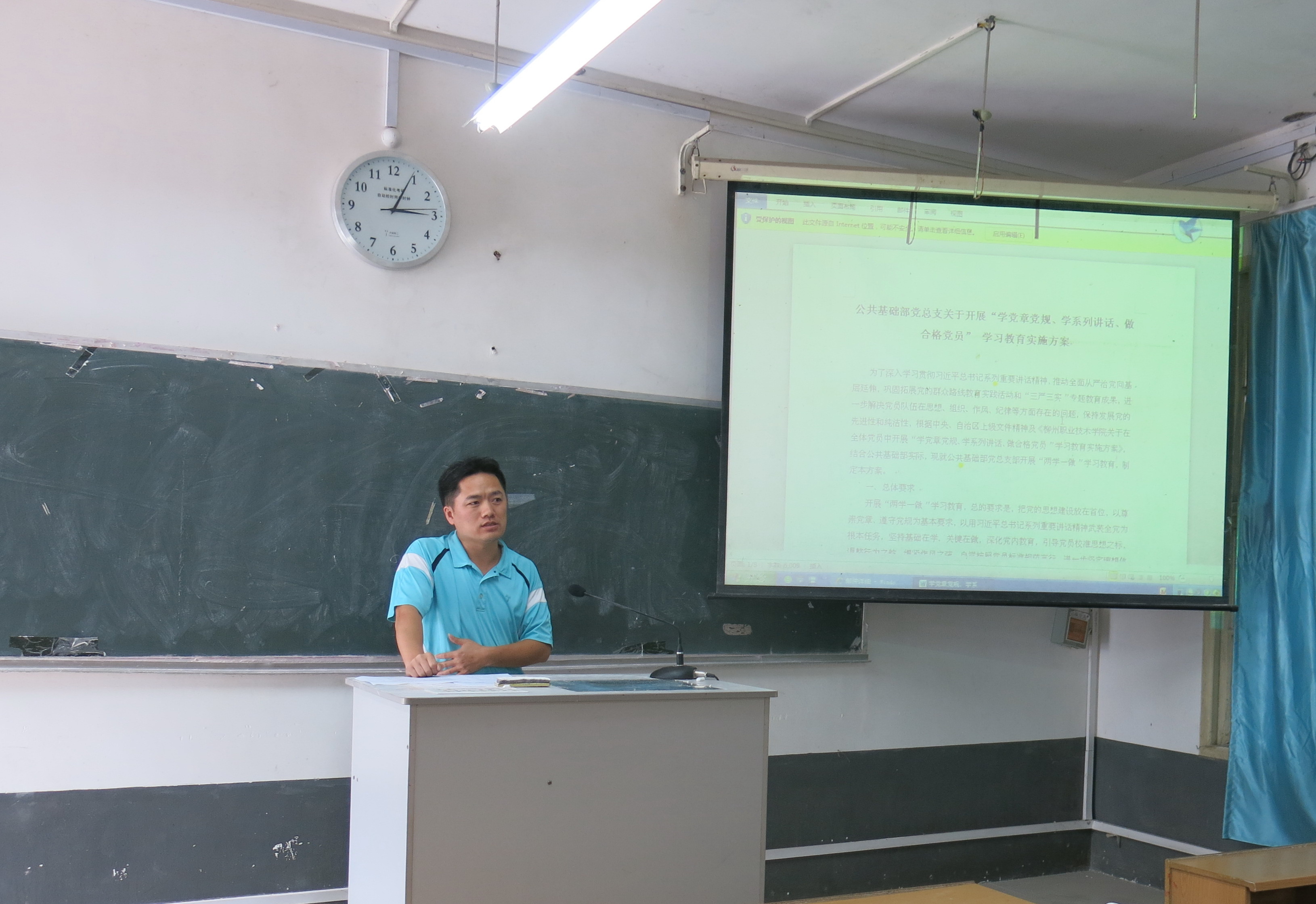 党总支组织委员黄志卫介绍了公共基础部党总支部“学党章党规、学系列讲话、做合格党员”学习教育实施方案及各阶段的工作部署。