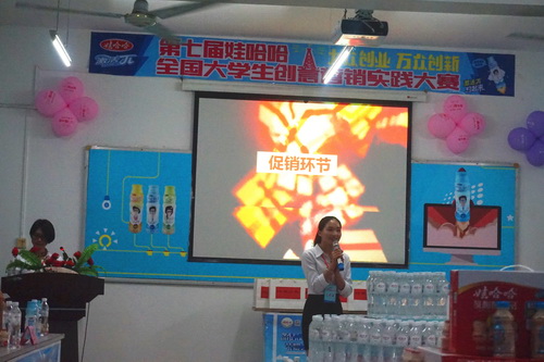 小太阳营销团队是参加第七届娃哈哈全国大学生创意营销大赛柳州赛区的一支参赛队伍,在大赛过程中结合课程和大赛要求,完成了产品的广告拍摄作品3个,客户开发方案,娃哈哈产品客户访谈会行动方案等作业和作品。在客户访谈会上团队向莅临现场的企业专家和学校专家展示了自己编剧策划、拍摄及后期制作的微视频广告,还像嘉宾们秀出了我们商品陈列、客户接待、会议主持、产品卖点释放、解除客户异议、现场成交技巧以及收银与账期管理等营销技能。