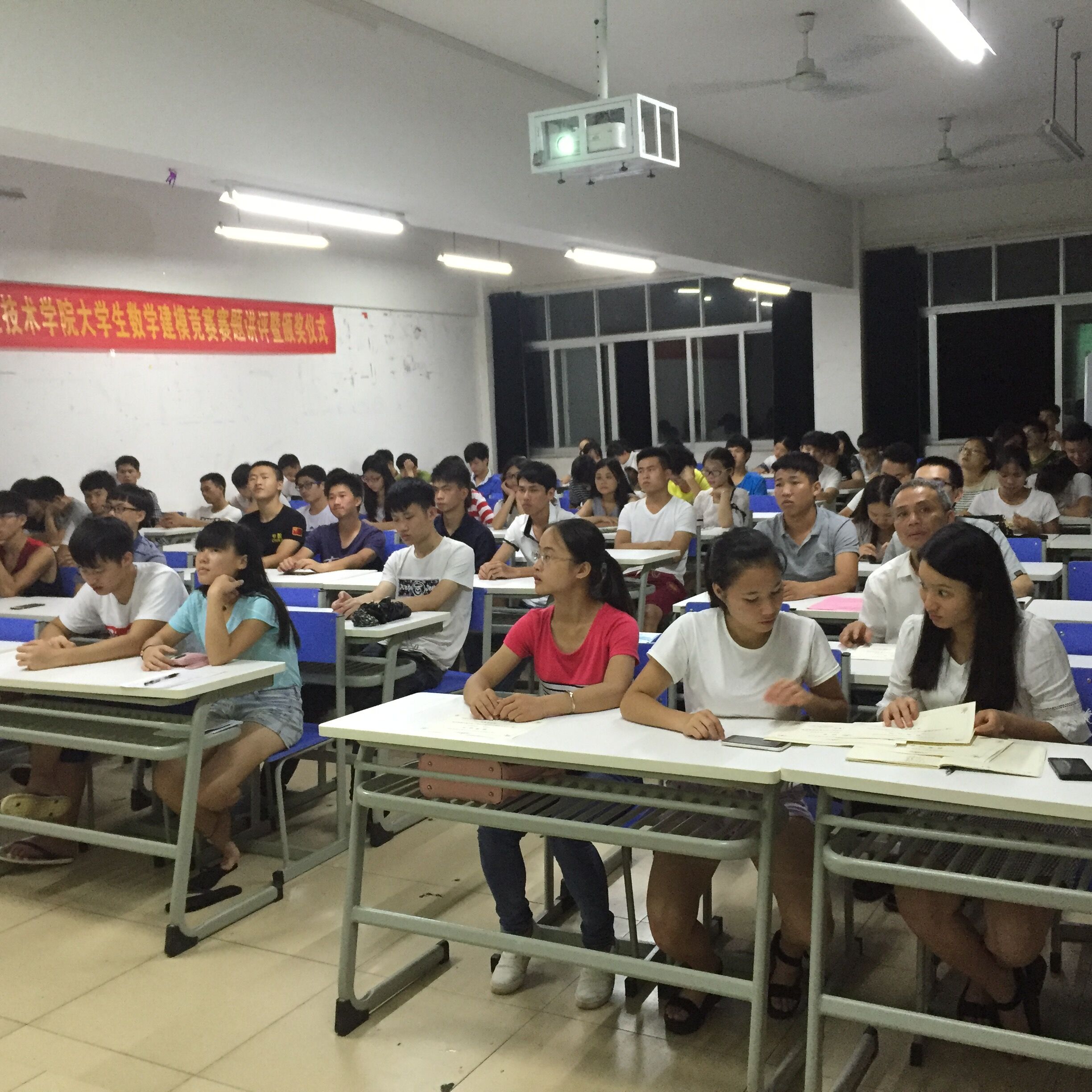 5月15日下午,高职数学教学团队负责人韦碧鹏老师在博闻楼108教室专门召开数模竞赛赛前培训,李大林教授、钟磊等指导老师以及报名参赛队伍受邀出席,让参赛队伍了解竞赛的时间和方式、要求及目的?;嵘?,韦碧鹏老师为参赛选手答疑解惑的同时还分享了自己的建模之路,给予选手们极大的鼓舞。