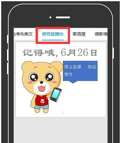 二是建立易班“快搭轻应用”:首先是“毕业典礼直播台”版块,易班工作站将于6月26日上午学院毕业典礼当天在现场设置直播台,通过“精而快”的图文形式第一时间对典礼现场盛况进行实时播报,让不在现场的同学也可以身临其境地感受毕业典礼氛围。