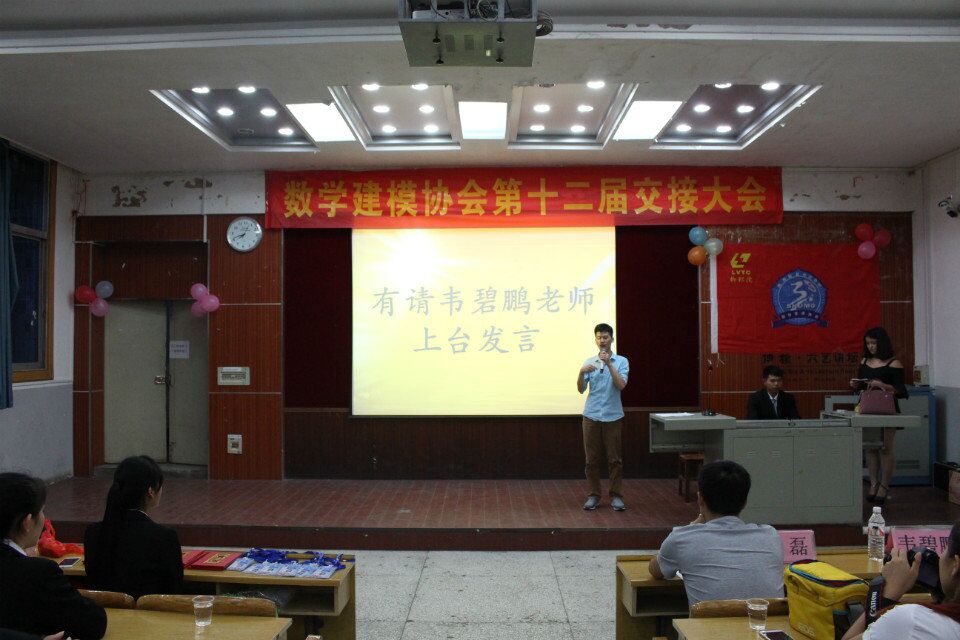新闻网消息(公共基础部/韦碧鹏、数模协会/黄鹭鹭 摄影/韦长杨)6月18日晚,我校数学建模协会在德馨楼101教室举行了第十二届理事交接大会,公共基础部高职数学教学团队负责人、数学建模协会指导老师韦碧鹏、钟磊老师出席交接仪式,各系部、各社团代表以及数模协会全体成员近100多人参加会议。