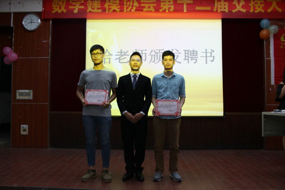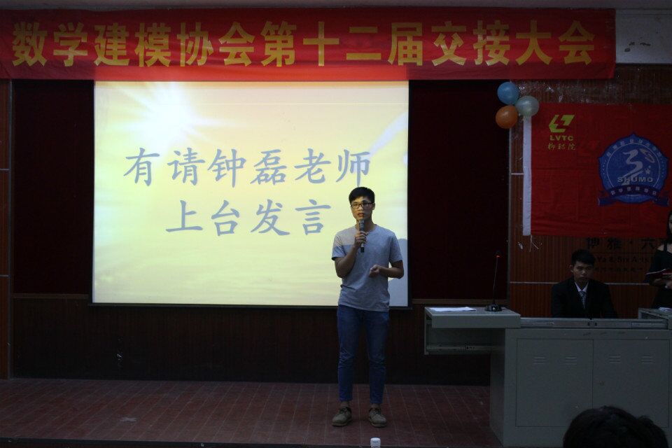 韦碧鹏、钟磊两位老师致辞中肯定了该协会在一年中付出的努力和取得的进步,肯定了上届理事对数学建模协会做出的贡献,表达了对新理事的期待。第十一届会长张均棠做年度工作总结。在过去的一年里,协会积极开展数学建模培训、讲座,协助组织学院数学建模竞赛,积极参加学院团委、社团联及兄弟社团组织的文化艺术节、气排球比赛、舞步大赛等活动,为学院校园文化建设添砖加瓦,特别是协会成员在2015年“高教社杯”全国大学生数学建模竞赛中获得国家级二等奖一项、自治区一等奖一项、二等奖一项的 好成绩,充分展现了我院大学生较高的数学建模水平。总结中也指出了一年来协会工作的不足和改进措施。