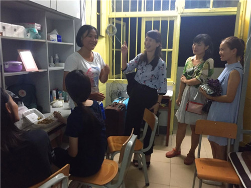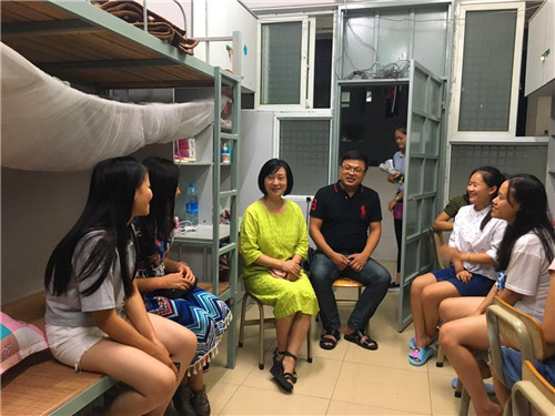 学院副院长谭欣(右二)询问是否适应学?;肪?/strong>