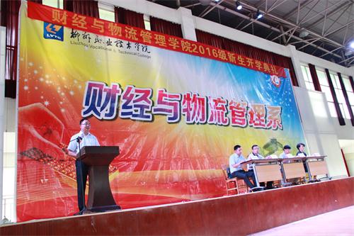 新闻网消息(文/财经与物流管理学院 杨璐 图/财经与物流管理学院 杨璐、梁金铭)9月12日上午,财经与物流管理学院2016级新生开学典礼在体育馆四楼隆重举行。学院党总支书记韦耀业、副院长凌世寿、学生科长覃洋、教学科长易新亚、新生辅导员及全体2016级新生参加典礼,典礼由学生科长覃洋主持。
