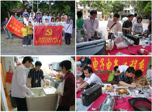 为了进一步加强学生党员队伍建设和系学生党员的先进性教育,充分发挥学生党员的先锋模范作用。同时也为了展示系专业特色,扩大党建工作和家电维修专业的影响力,提高同学们的专业动手能力、学以致用,服务于社会,2009年11月8日,电子电气工程系到柳州市第二测绘院举行了一次义务维修活动。