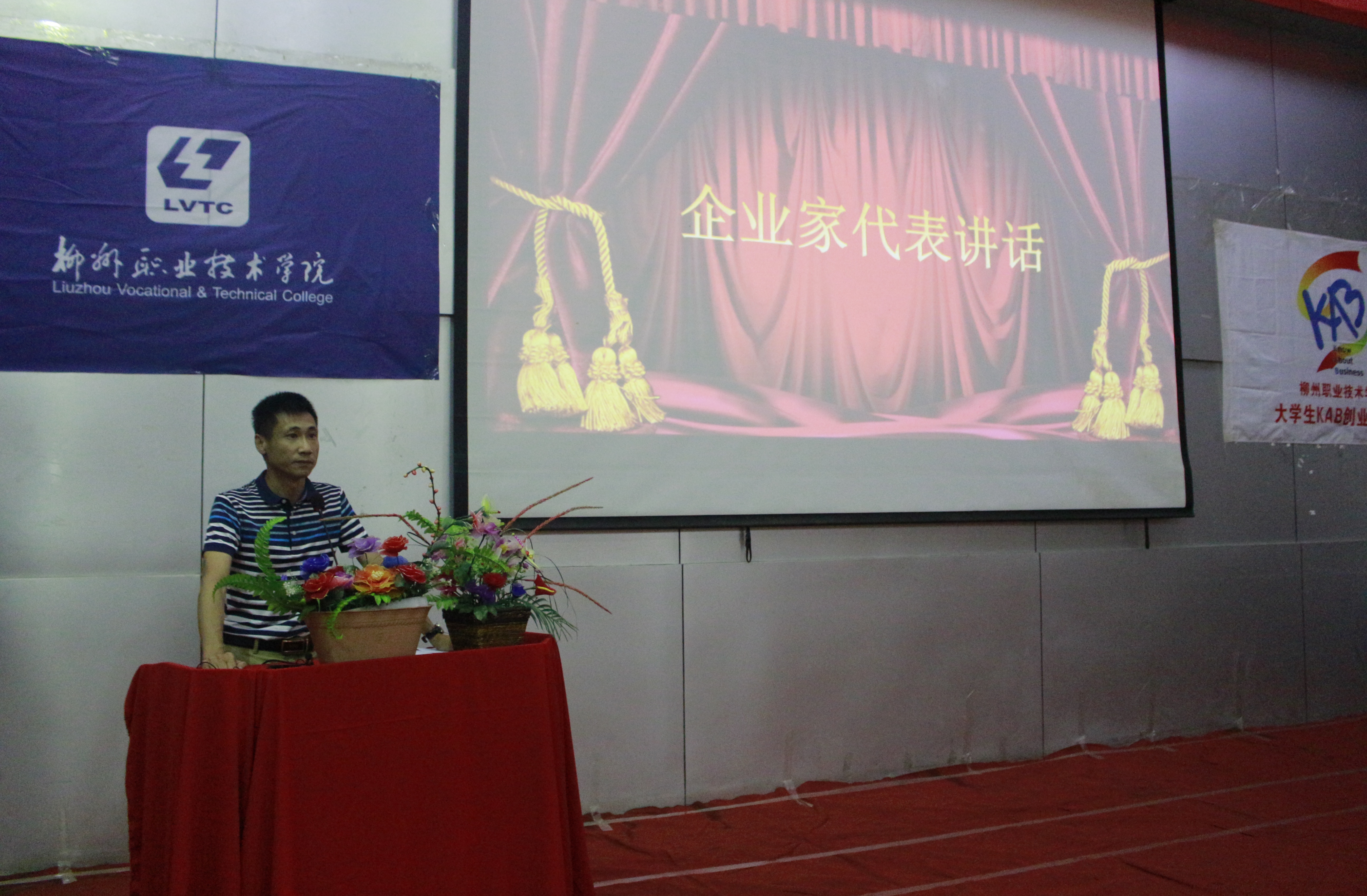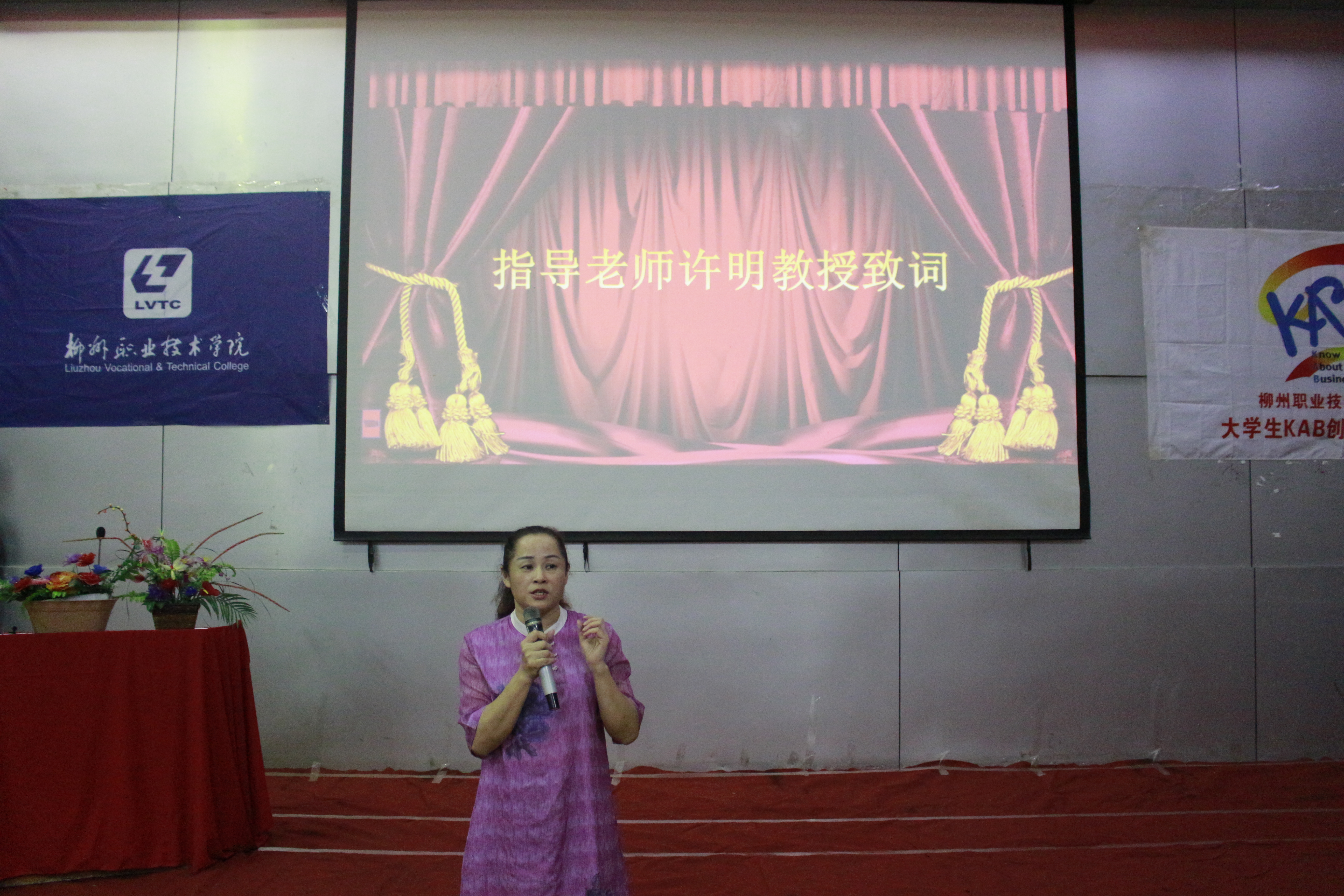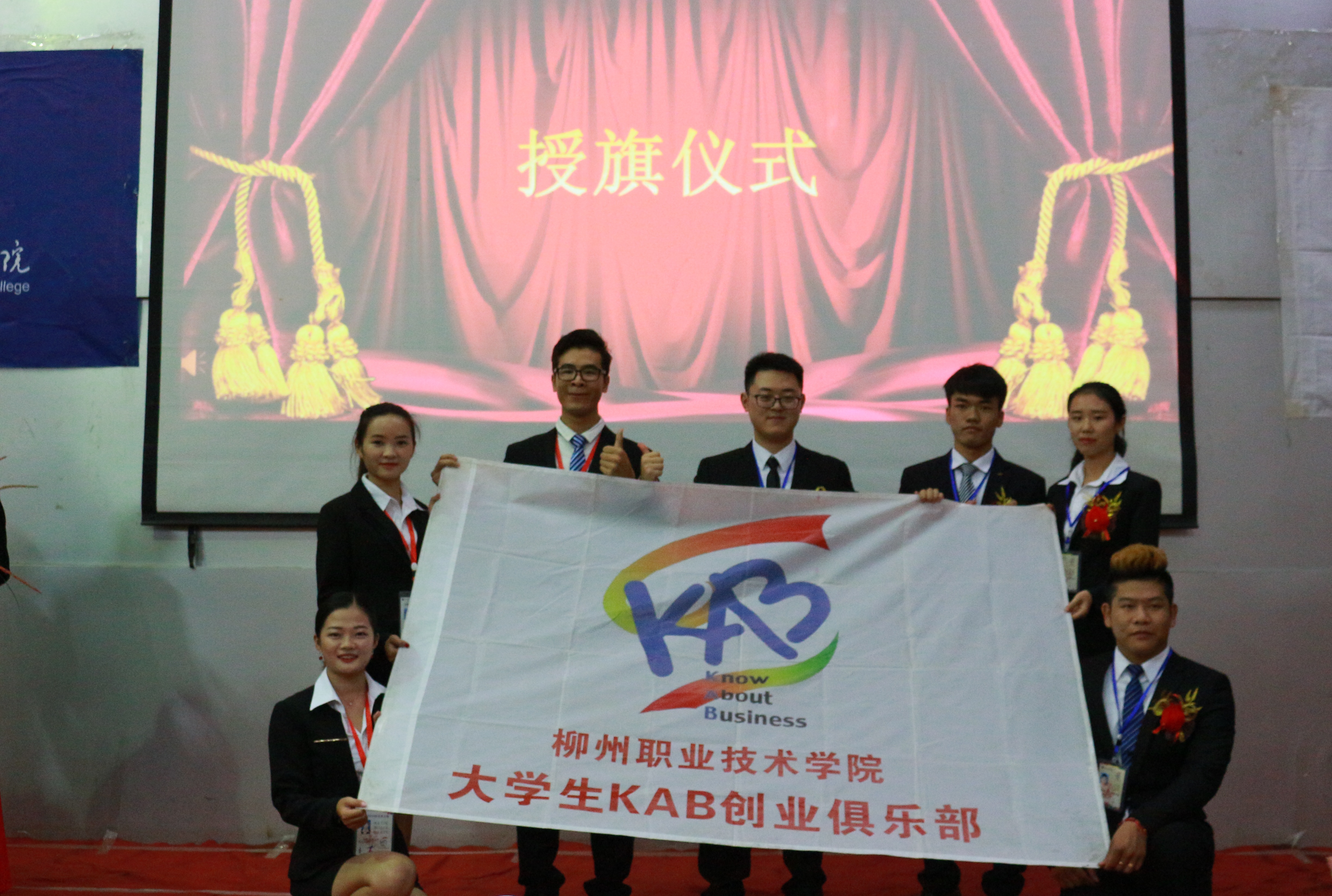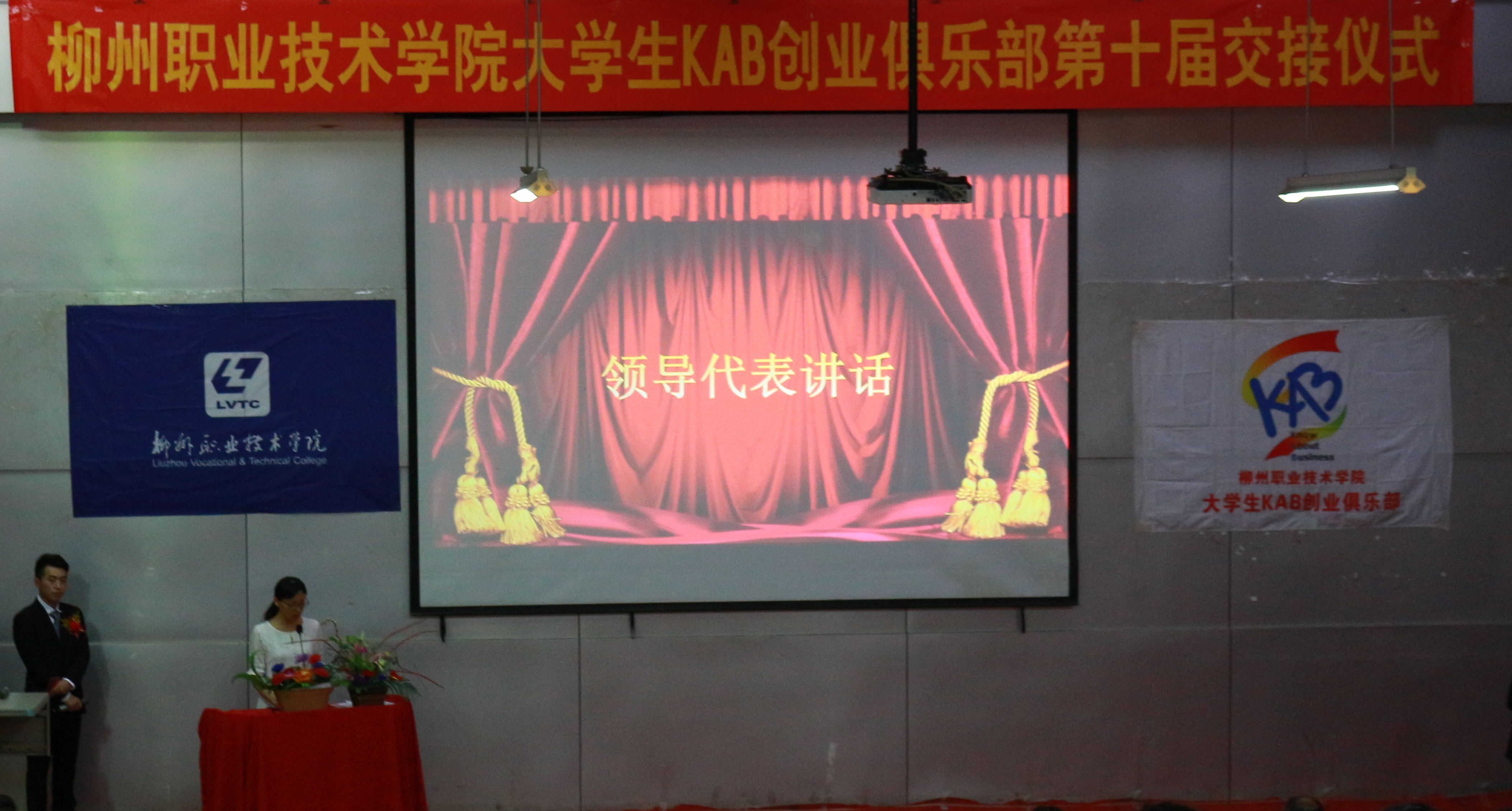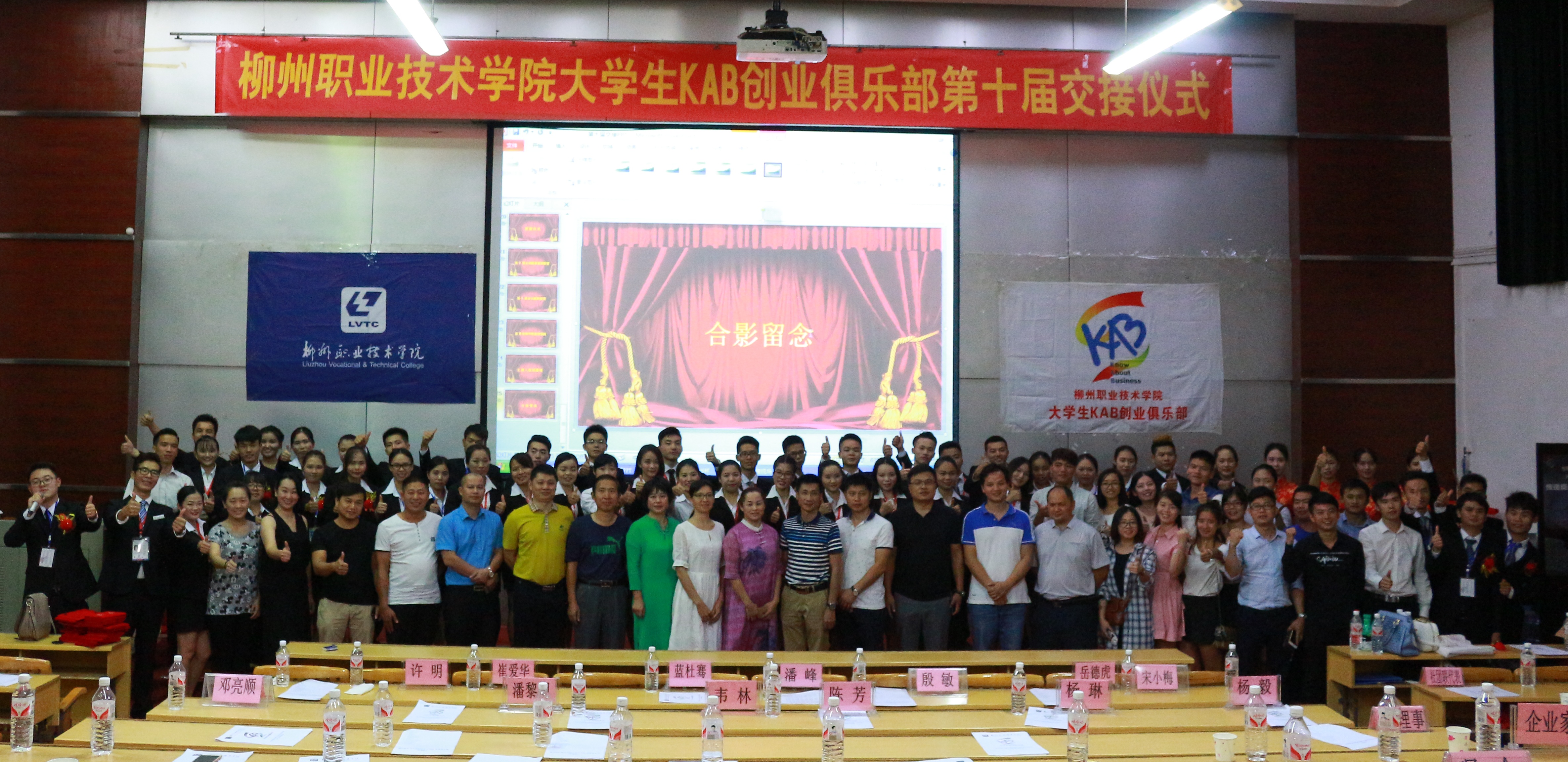 新闻网消息(文、图/公共基础部 许明 大学生KAB创业俱乐部 赵倩)10月9日晚,我校大学生KAB创业俱乐部第十届理事交接仪式在博闻楼110教室隆重举行。出席仪式嘉宾有柳州商聚企业管理咨询有限公司总经理潘黎明、柳州市藏富科技有限公司总经理林福坤、柳州阳光网及首斧传媒代表等企业家代表和媒体人士,学校方面的嘉宾有教务与实训管理处处长韦林、后勤与财务处处长邓亮顺、公共基础部主任陈芳以及院团委、各二级学院的领导、老师,校社团联、学生会、各兄弟社团代表、大学生KAB创业俱乐部部分前任理事及大一新生参加了交接仪式。
