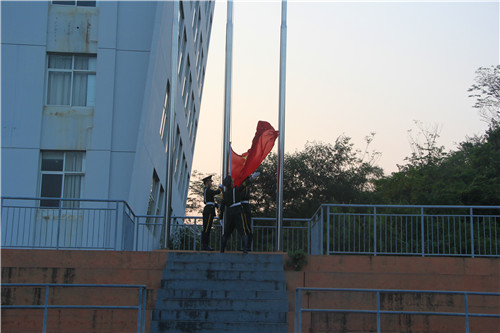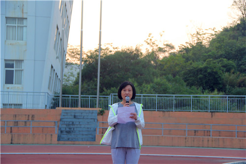 升旗后黎院长在国旗下讲话。她说,国旗代表着祖国的形象,国旗可以加深同学们对祖国的认识;升旗可以增强同学们的自信心、增强老师的责任感、提高组织能力,我们要爱护国旗,为祖国争光。而晨练可增强同学们的免疫力?!吧谟谠硕保潜蟮?。珍惜生命、保持健康的身体离不开运动。建议同学们多了解体育常识与健康生活知识,在课余时间充分利用学校资源开展锻炼,只有健康积极的生活方式才能保证大学生活的顺利完成。