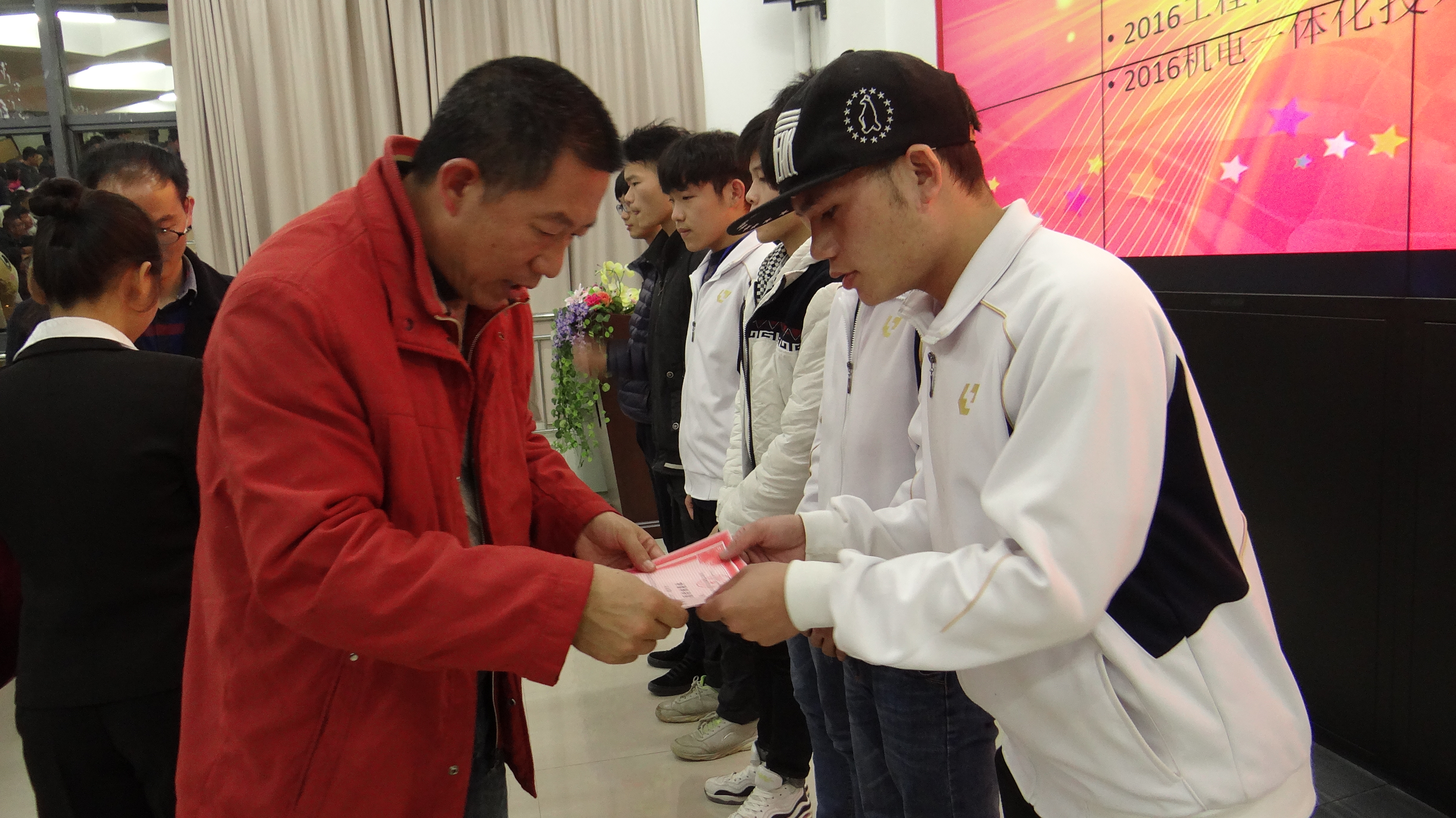 全体与会人员观看了记录着机电学院本学期活动和工作点点滴滴的影集,王书记、学生科长韦伟、分团委书记田文靖、各班辅导员分别给在本学期各项活动中表现优异的集体和个人颁发了“工作积极分子、先进工作者、先进志愿者班集体、优秀青年志愿者、优秀团支书、优秀运动员、优秀宿舍、优秀通讯员”等14个奖项。