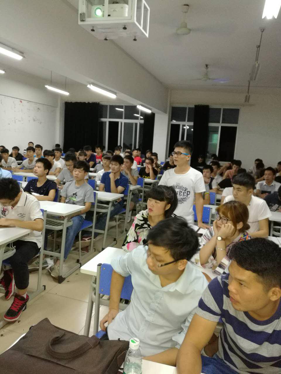 2016年10月21日晚,电子信息工程学院诚邀广西信东地源热泵有限公司董事长、制冷专家邓义宁博士来校给同学们开了一场别开生面的讲座,主题是“中央空调的远程智能化控制技术”,该院空调与制冷专业150余名学生及教师聆听了讲座。