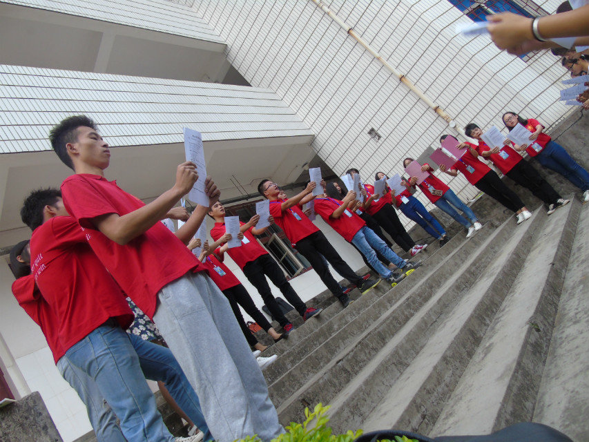 接下来,晨读正式开始。各部门理事带领各自的会员们围成圈进行学习,在理事们的带动下,文华楼前响起琅琅的读书声。