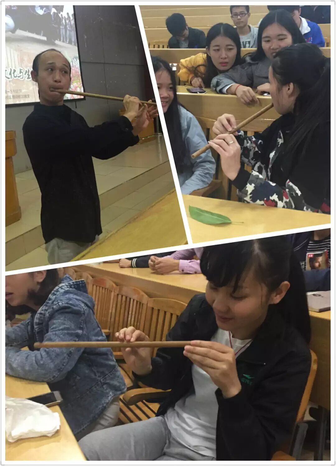 管老师教同学们吹木叶