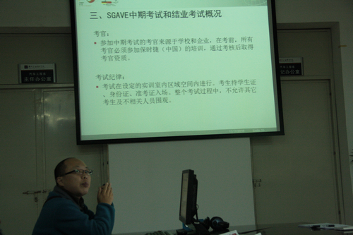 培训中,SGAVE项目组的谭新曲老师全面介绍了中德班课程设置、教学实施及能力测评的方案,指出了SGAVE项目职业能力测试方案的优点和不足;黄镇财老师则以2013届中德班学生的测试方案为例,深入讲解了SGAVE职业能力测试的方式及实施细节;专业团队负责人计端老师则以2013届风行班学生职业能力测试探索为例,讲解了SGAVE职业能力测试方案本土化改造后实施的办法、效果及急需改进的地方,并当场向相关团队教师布置了下一阶段要完成的工作任务。三位教师的讲解,让学院全体老师对德国的职业能力测试办法有了一个全面深入的了解。老师们认真聆听,深入思考,对本专业如何编制方案有了更为清晰的思路。