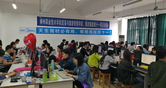贸旅学院对此次与美的集团2016年天猫“双十一”校企合作项目非常重视,从师资配备、场地设备、后勤保障、学生心理健康等方面做了大量工作,制定了应急保障方案,学院领导及专业教师轮流排班现场巡视指导。自9月18日项目启动开始,学生经历了岗前培训、企业考核、上线辅导等阶段,从9月26日起正式担任美的天猫旗舰店售前客服。一个多月的实战训练,让电子商务专业学生的服务意识、业务流程、话术能力、打字速度、心理素质有了显著提升,也实现了课程内容、教学方式与工作实践的有效对接。