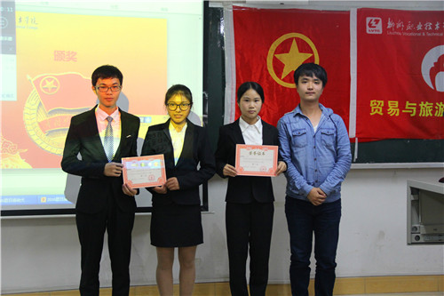 新闻网消息(文/贸易与旅游管理学院 吴鹏)11月22日18时50分,贸易与旅游管理学院分团委学生会在博闻楼411教室,开展“筑梦青春,你我共成长”团日活动评比大赛,该院分团委书记吴鹏、学校团委组织部部长邹赞梅、分团委组织部部长隆春萍、21个新生代表班级、30名班级观众以及11名各院代表参赛。礼仪部文永智、鄂珊珊承接本次礼仪接待,新闻部成员陈雪花主持。