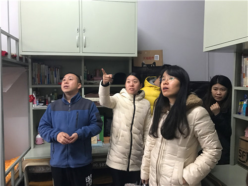 新闻网消息(文/图 贸易与旅游管理学院 吴鹏)为响应学校推进校园文明建设,塑造健康文明、积极向上的宿舍文化氛围,培养大学生团结协作的精神和良好的生活习惯,营造“团结向上、安全文明、卫生整洁、和谐愉快”的宿舍环境,11月25日中午,贸易与旅游管理学院党总支副书记陈月明、学生科科长夏佩、分团委书记吴鹏以及全体辅导员、院学生会全体学生干部,到该院学生宿舍开展“安全文明宿舍”创建与评比活动。
