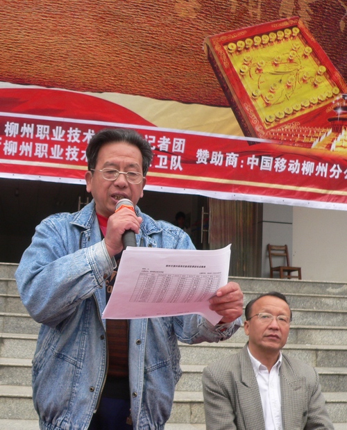 2009年11月28日,柳州市第四届高校象棋联赛在我院东校区第三实训楼前正式举行。柳州市象棋协会主席唐奇世,市象棋协会常务院象棋国家一级裁判员文增建、韦念龙、文俊,市象棋协会第一副主席兼秘书长谢绍坚,市围棋协会五子棋分会部长李小江等嘉宾出席此次活动。出席本次活动的还有参赛学校代表、社团代表以及班级代表。