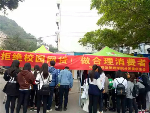 新闻网消息(文、图/贸易与旅游管理学院 吴鹏)为树立同学们合理消费的理念,11月5日中午,贸易与旅游管理学院分团委学生会于学院A区开展“拒绝网络贷款,做合理消费者”主题系列活动。