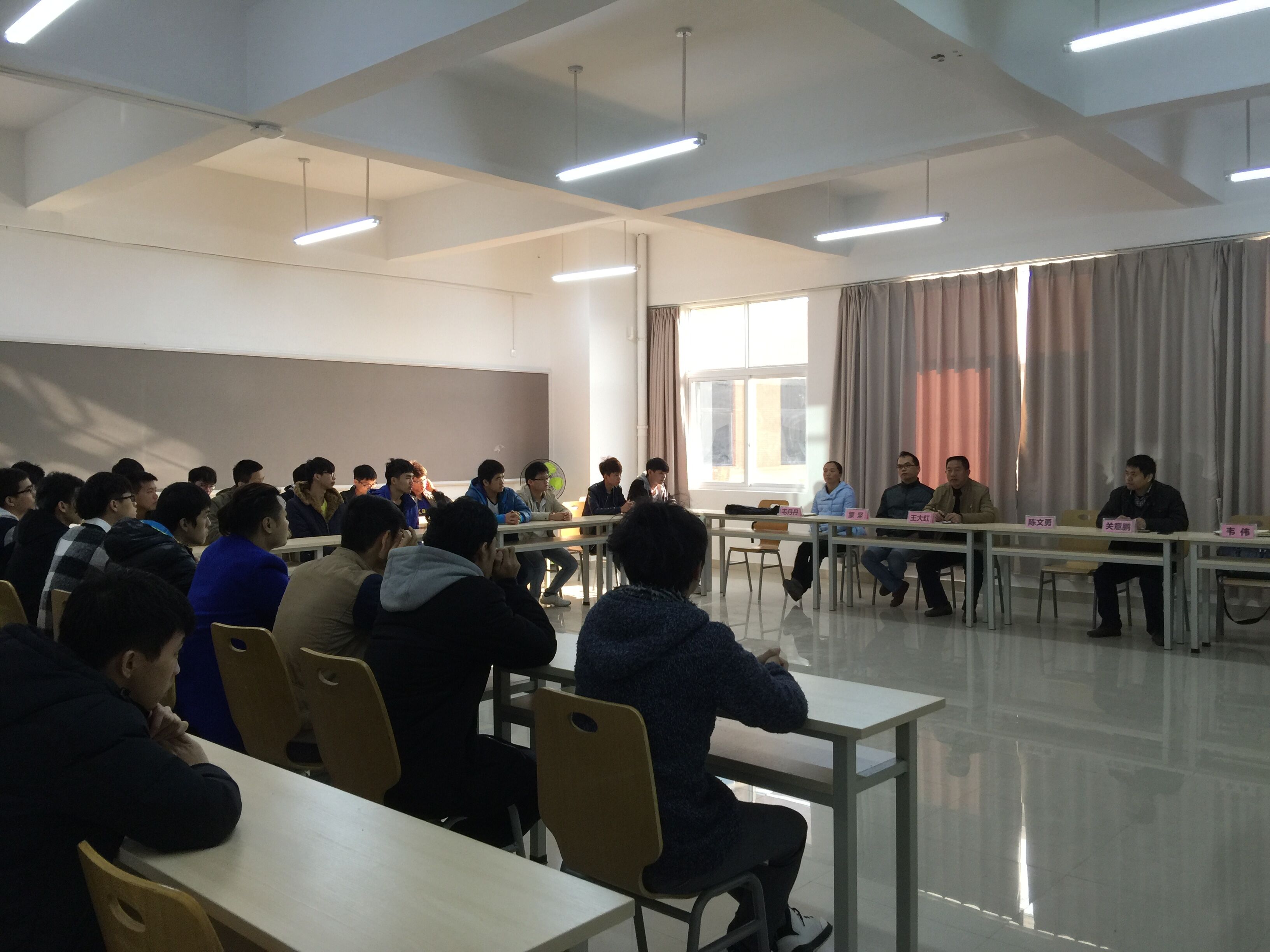 最后,王书记介绍了官塘校区的情况,并强调了学生在校期间要严格遵守学校规章制度,确保人身安全。官塘校区建设尚未完善,学生们可以向师生们寻求解决途径并努力克服困难。为帮助学生们更好适应官塘校区的生活,领导老师与学生们召开了简短的座谈会,学生提出的关于实训教学时间、文化课程要求、校医室、饮水等问题,领导老师们都耐心地一一解答。