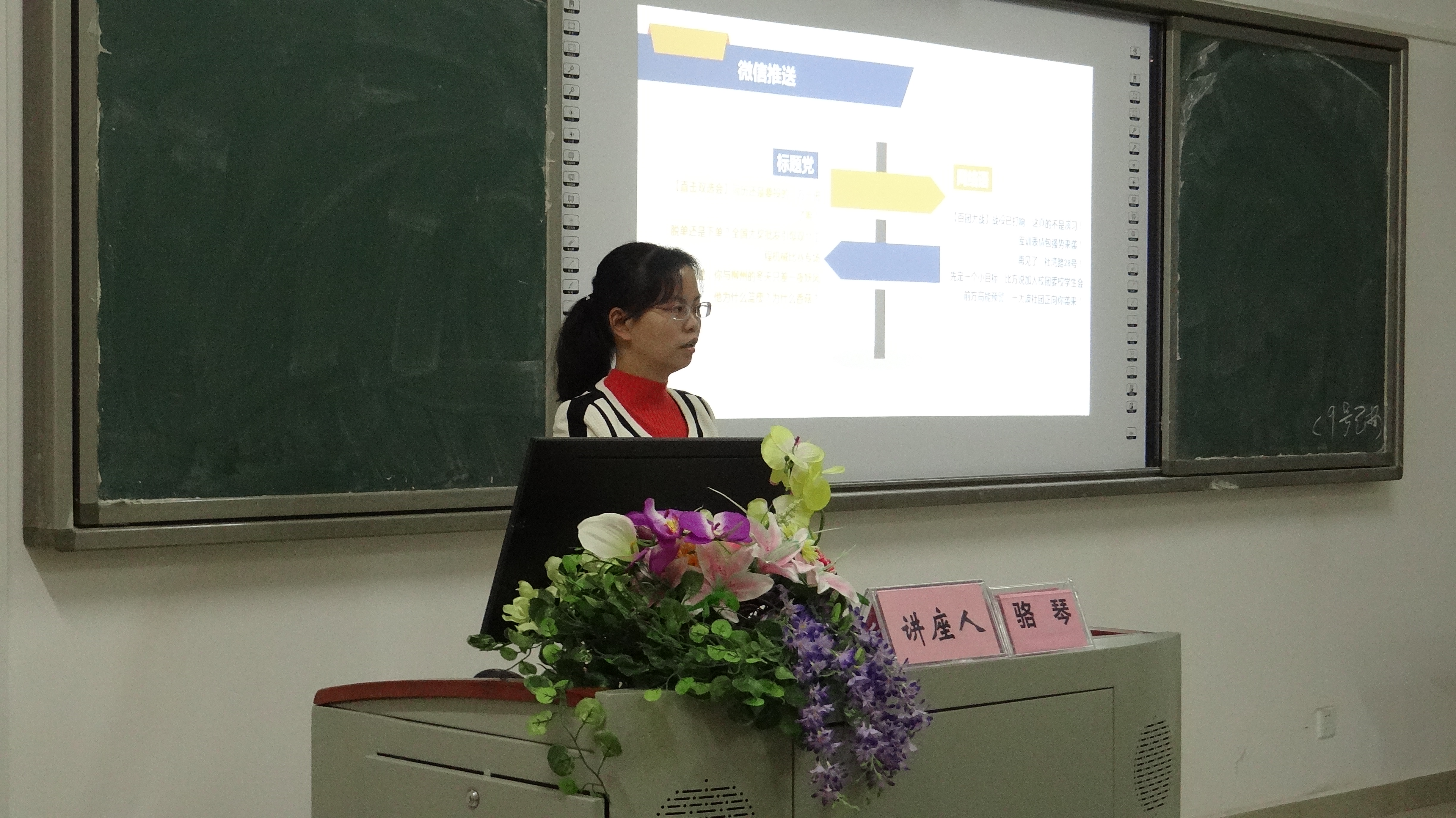 骆琴老师给同学们讲解一篇好的校园新闻应具备的几个要素