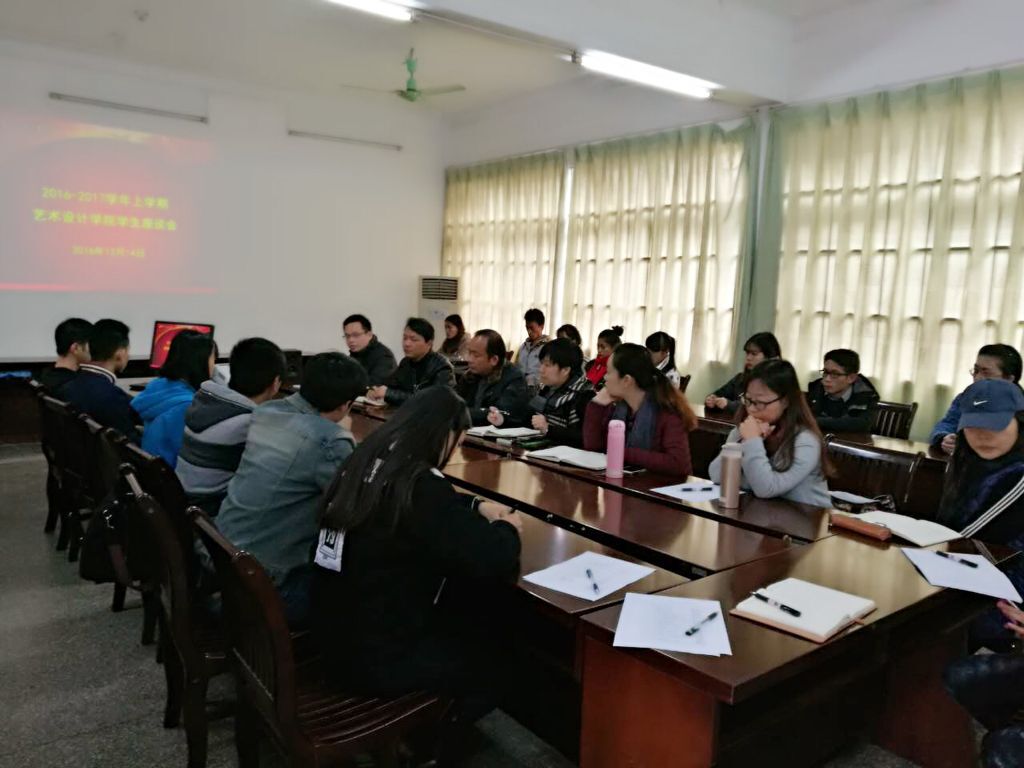 新闻网消息(文/艺术设计学院 杨宏妮 图/艺术设计学院 杨宏妮、陈冰梅)2016年12月14日上午,艺术设计学院学生教学信息员座谈会在艺术校区1- 203会议室召开,院长李革、党总支书记王慧,副院长雍佳、熊勇超、学院各专业团队负责人及30余名各专业班级学生代表参加?;嵋橛筛痹撼ば苡鲁鞒?。