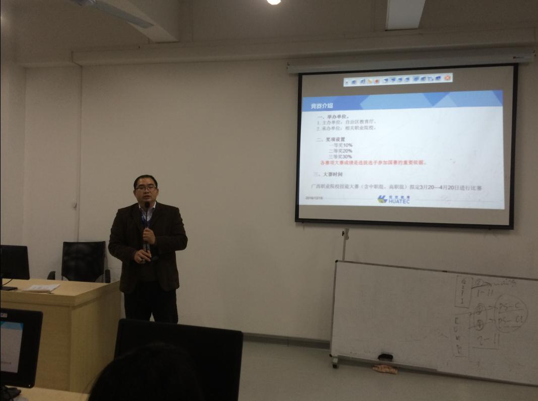 新闻网消息(文/ 电子信息工程学院 付伟)为更好迎接2017年全国职业院校技能大赛,做好赛前选拔和集训工作,12月15日下午,中兴通讯信息学院ICT行业创新基地召开“柳职院中兴通讯学院(通信技术、云计算)国赛选拔启动会”,会议由中兴通讯信息学院院长罗晓健主持,电子信息工程学院副院长蒙飚、主任孔轶艳和中兴通讯教学团队全体教师及通信技术、云计算专业70余名学生参加。