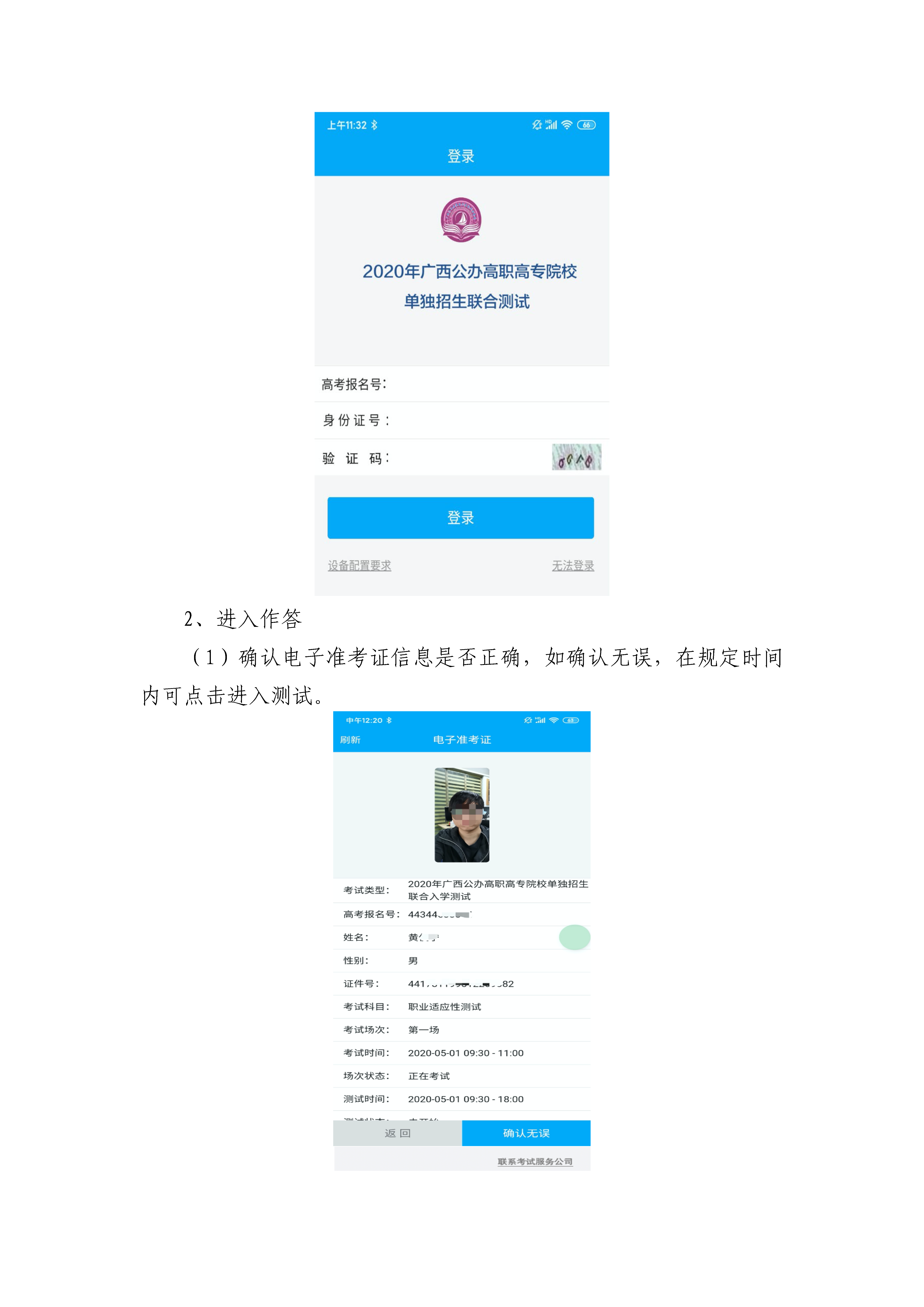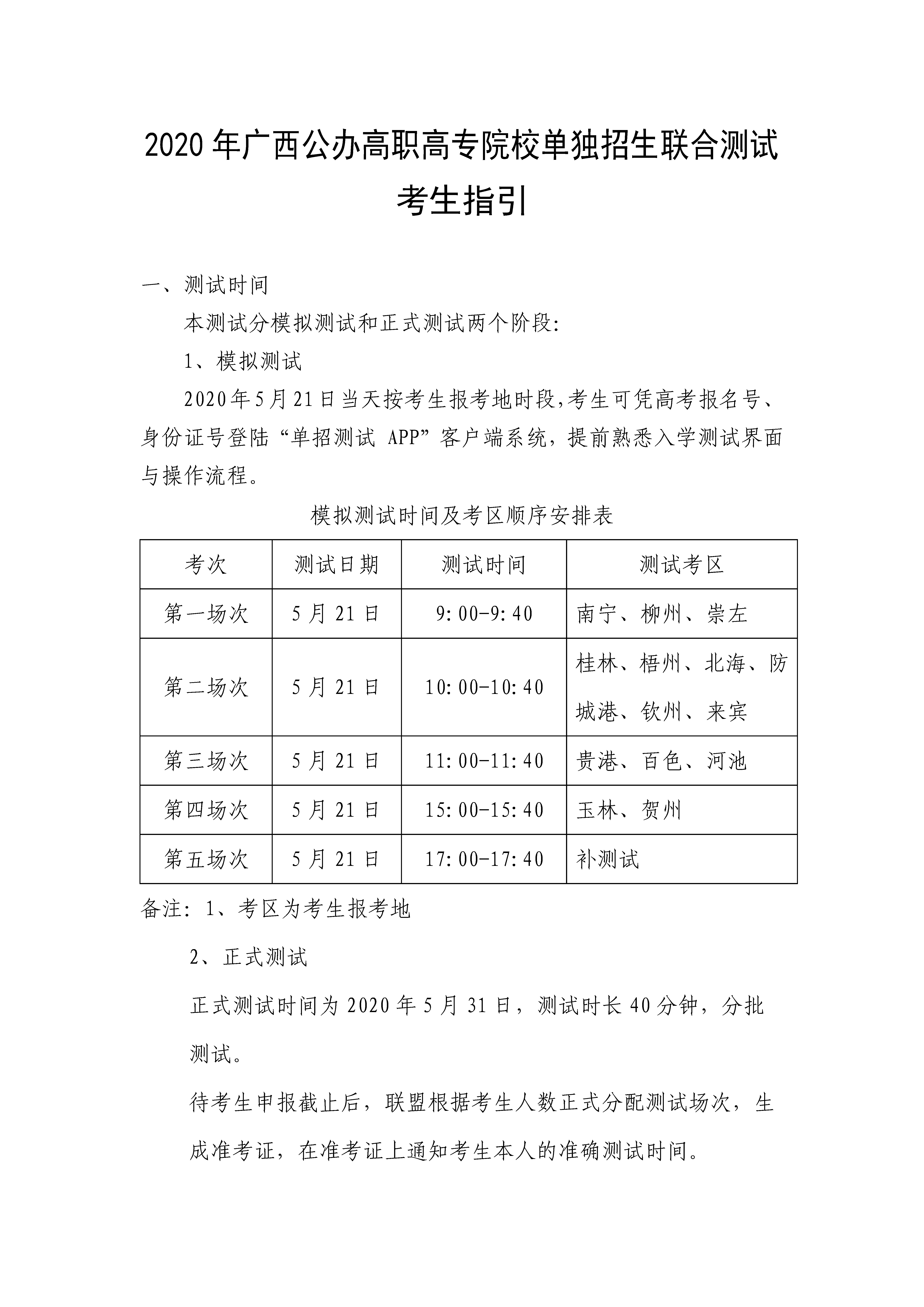 2020年广西公办高职高专院校单独招生联合测试 考生指引 来源:广西公办高职高专招生联盟 发布时间:2020-05-07 16:58:18 浏览次数: 次 【字体:小 大】 终审:招生信息中心 分享到: 【打印正文】