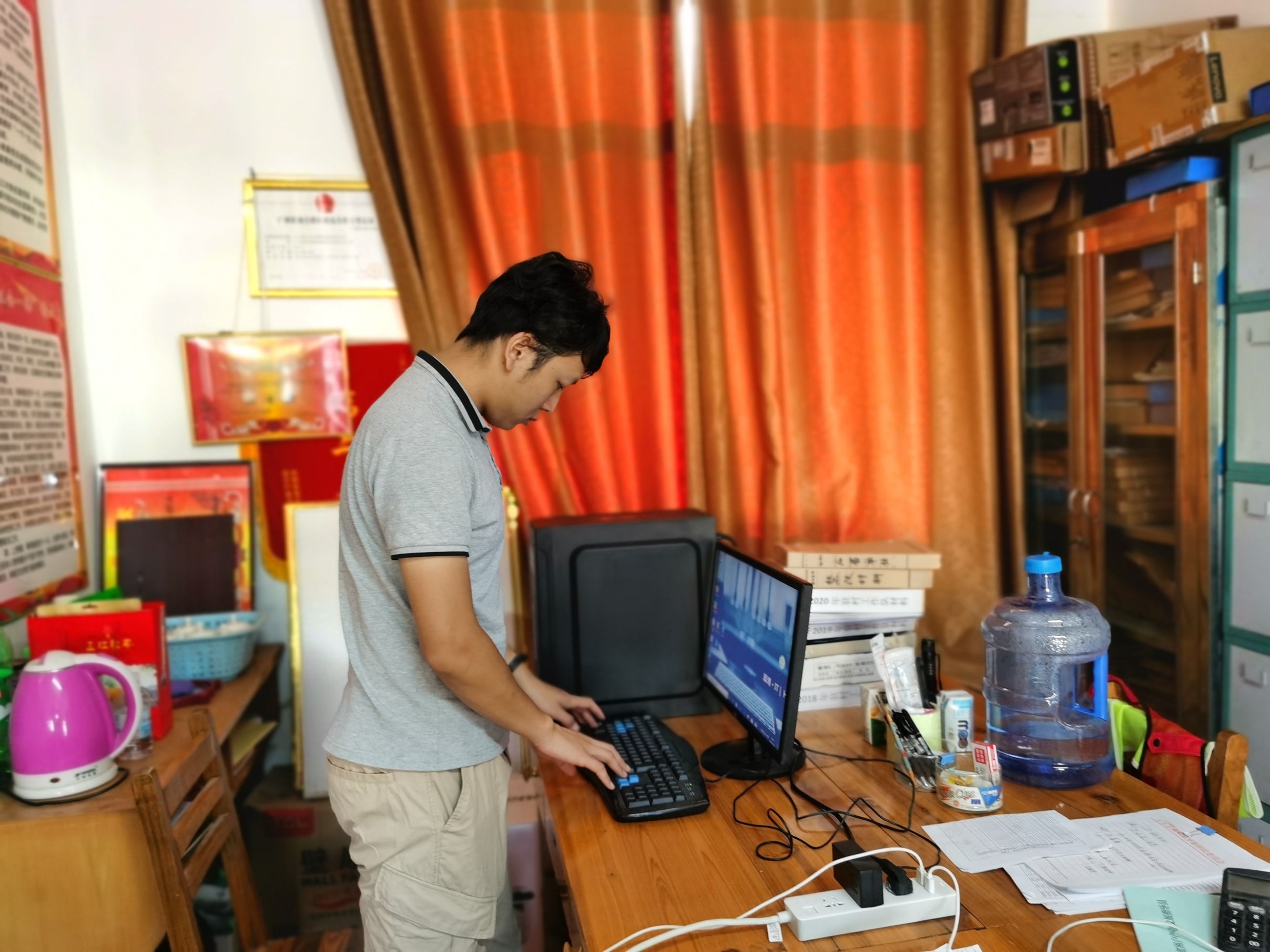 罗强同志协助检修村委电脑