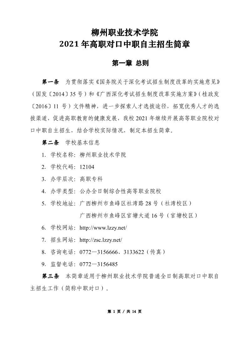 柳州职业技术学院2021年高职对口中职自主招生招生简章 来源: 发布时间:2021-03-03 10:00:00 浏览次数: 次 【字体:小 大】 诚信承诺书.docx 终审:招生信息中心 分享到: 【打印正文】