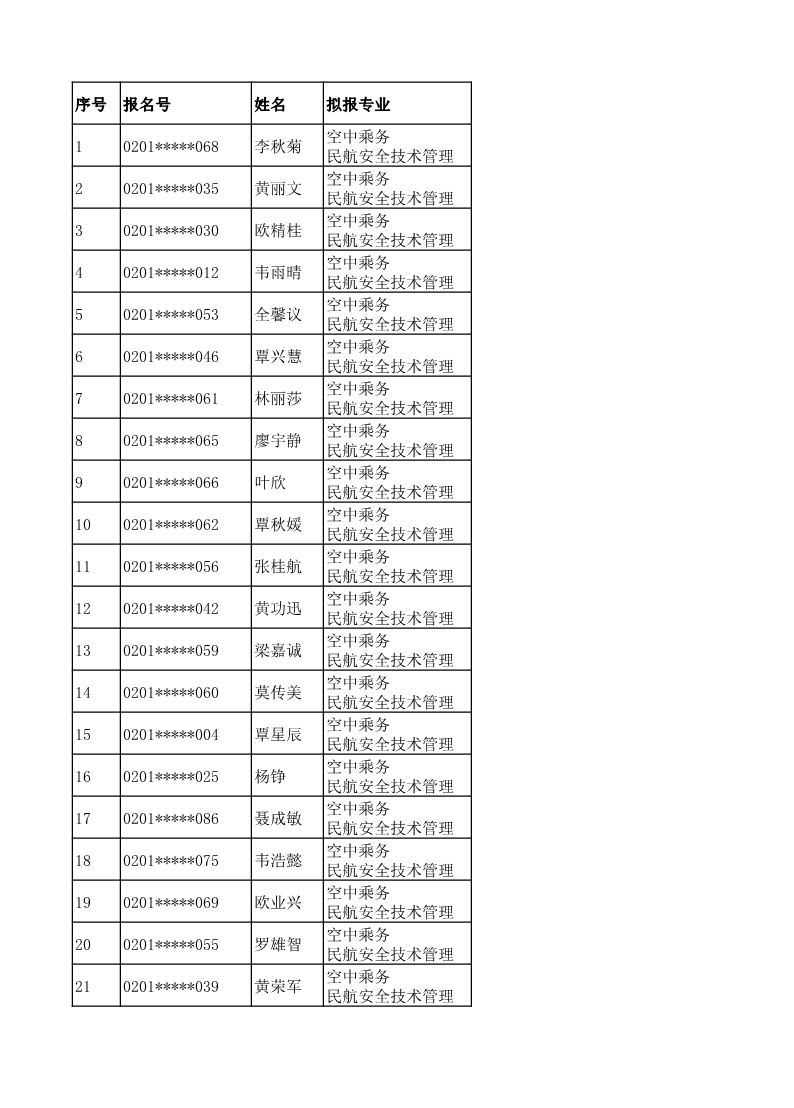 柳州职业技术学院2024年单独/对口招生航空类面试合格名单公示