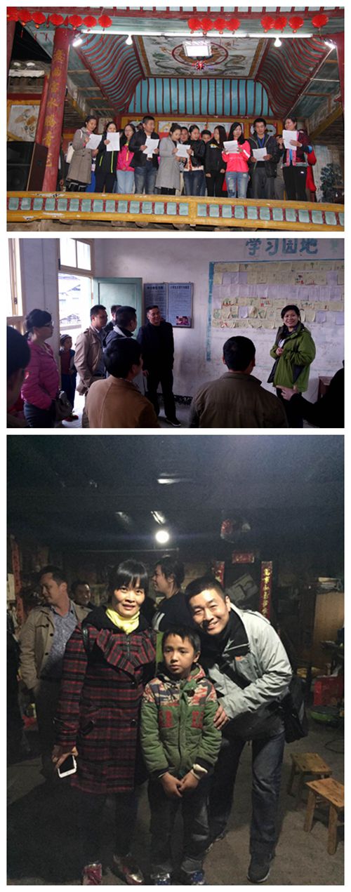 以上三图为爱心人士与村民联欢并到学校参观和家访受助学生