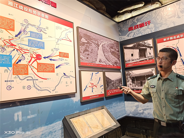 聆听讲解员讲解湘江战役中革命先辈的故事
